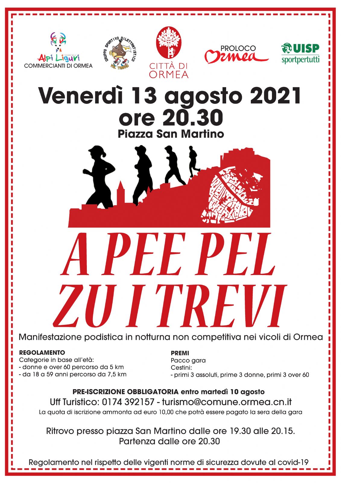 - Le iscrizioni sono da effettuarsi esclusivamente on line fino alle ore 24 del 10.08.2021: Uff Turistico: 0174 392157 – turismo@comune.ormea.cn.it.