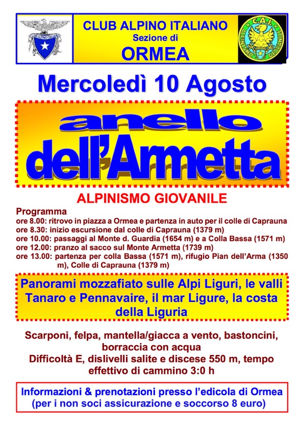 ore 08.00 - ritrovo in piazza a Ormea e partenza in auto per il colle di Caprauna ore 08.30 - inizio escursione dal colle di Caprauna (1379 m)