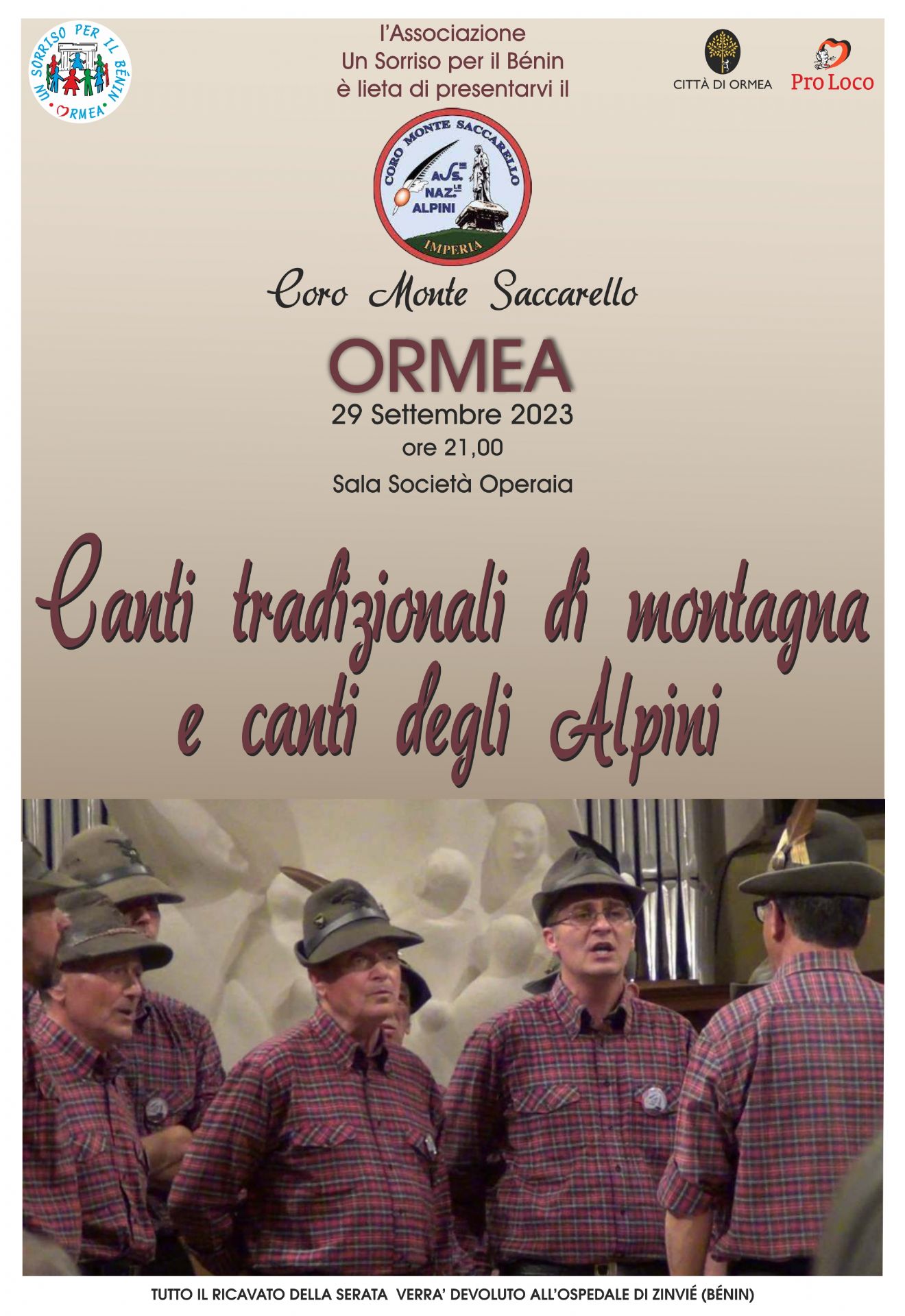 Il ricavato sarà interamente devoluto all'ospedale di Zinvié in Bénin.