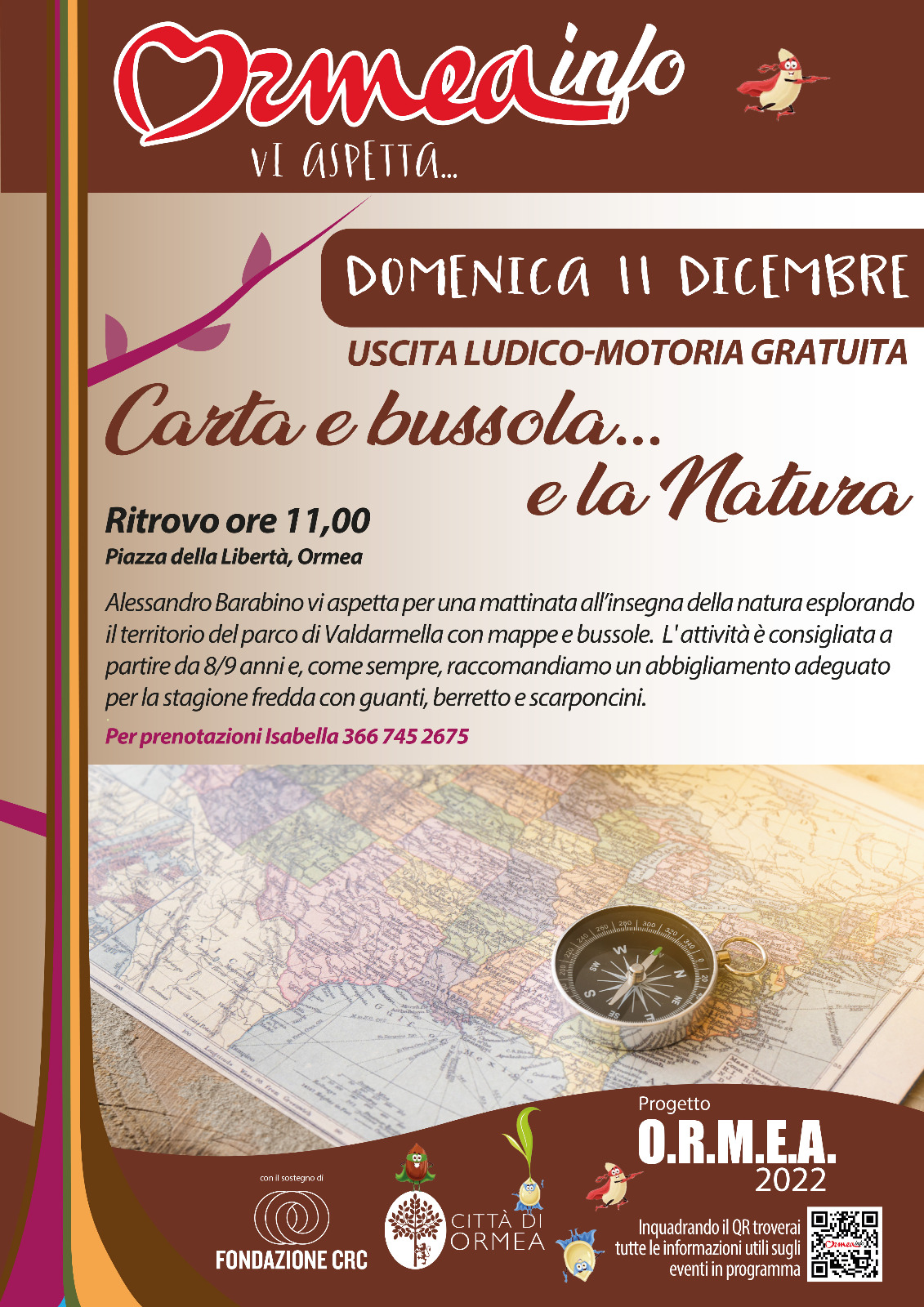 Alessandro Barabino vi aspetta per una mattinata all'insegna della natura esplorando il territorio del parco di Valdarmella con mappe e bussole. L'attività è consigliata a partire da 8-9 anni e, come sempre, raccomandiamo un abbigliamento adeguato per la stagione fredda con guanti, berretto e scarponcini.