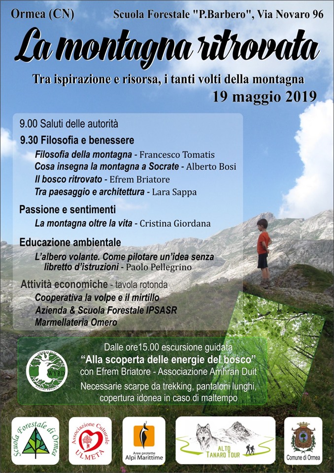 Sarà la Scuola Forestale di Ormea a fare da palcoscenico, il prossimo 19 maggio a partire dalle ore 9.00, al convegno “La montagna ritrovata tra ispirazione e risorsa”, promosso dall’Istituto Scolastico stesso in collaborazione con l’Associazione Culturale Ulmeta e l’Ente di gestione delle Aree Protette Alpi Marittime e organizzato con il patrocinio del Comune di Ormea.