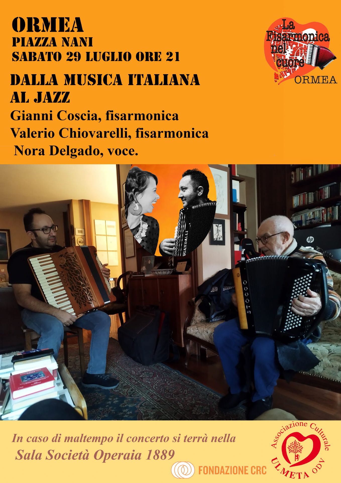 Dalla musica italiana al jazz: GianniCoscia, fisarmonica-ValerioChiovarelli, fisarmonica-NoraDelgado, voce.