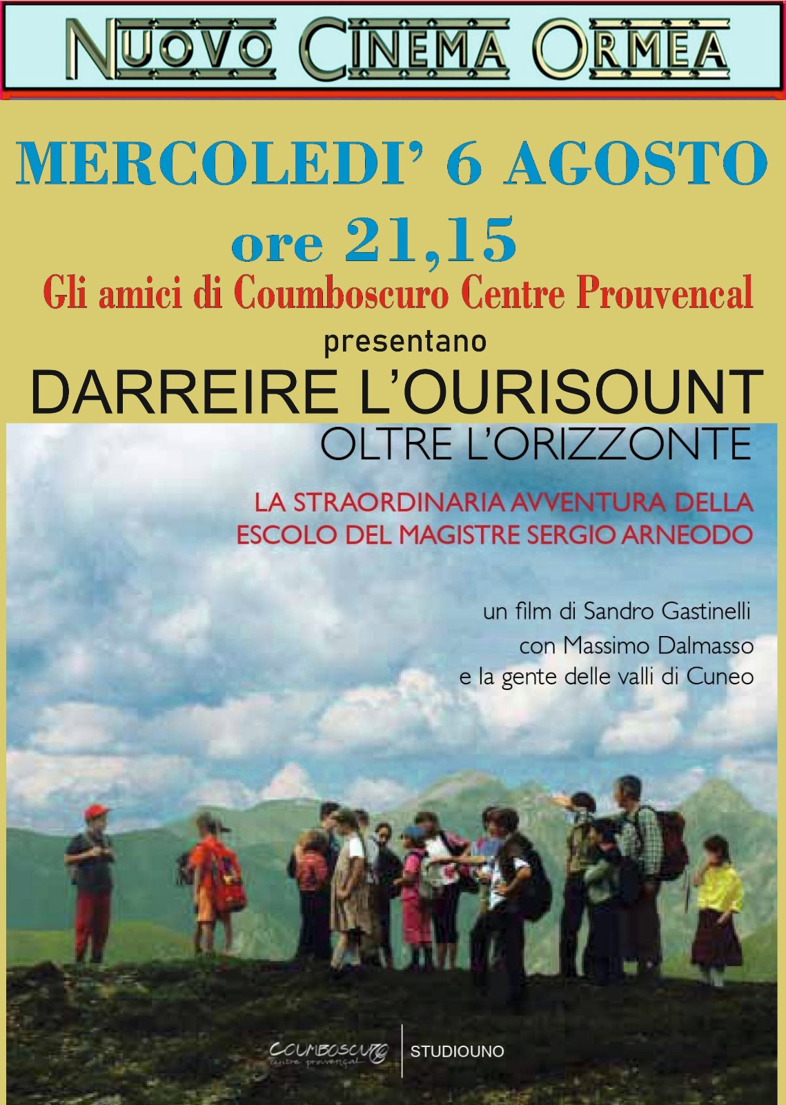 Mercoledì 6 agosto alle ore 21:15, presso il Nuovo Cinema Ormea, gli amici di Coumboscuro Centre Prouvençal presentano il film "Darreire l’Ourisount – Oltre l’orizzonte"