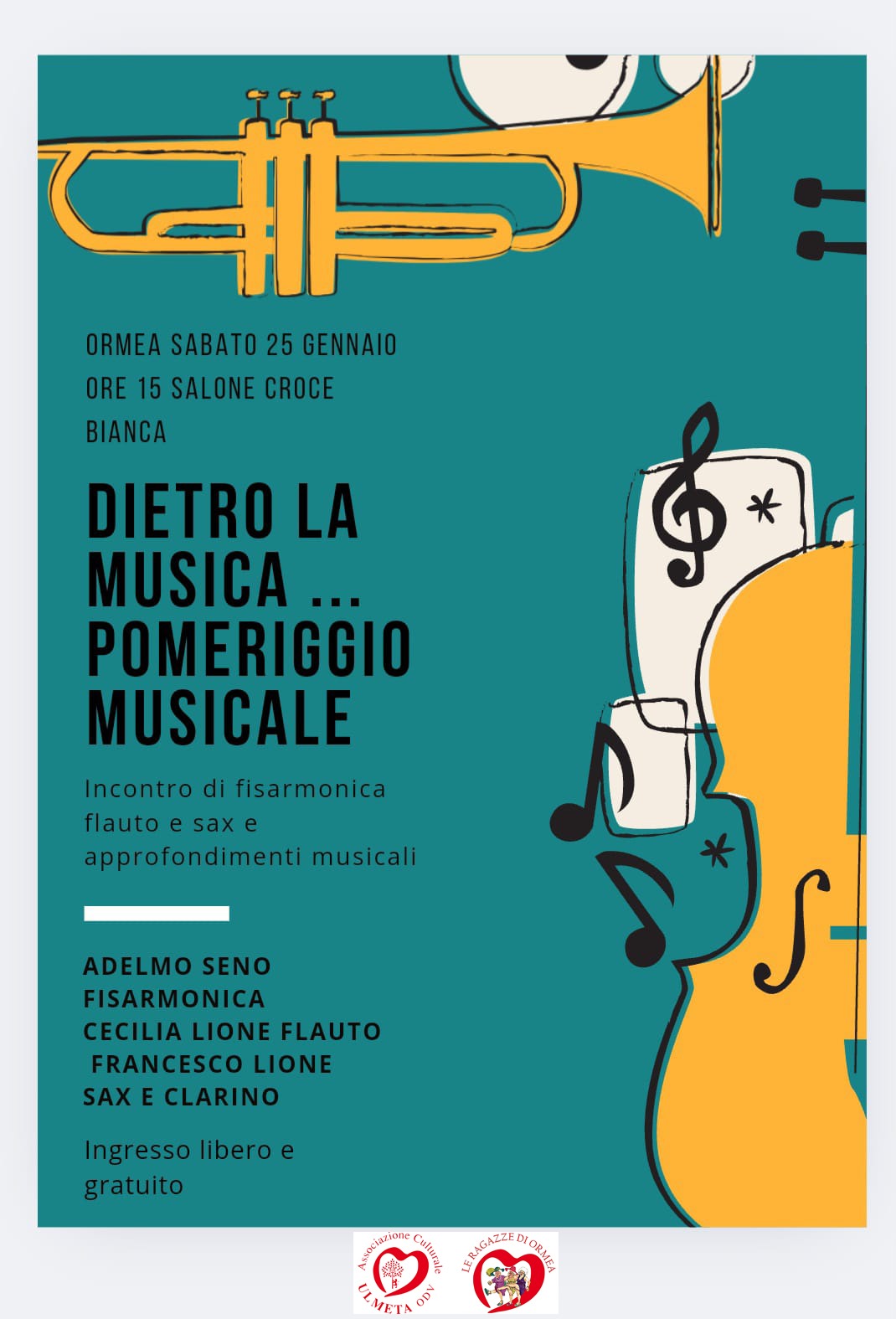 Intervengono Adelmo Seno (fisarmonica), Cecilia Lione (flauto), Francesco Lione (Sax e Clarino)