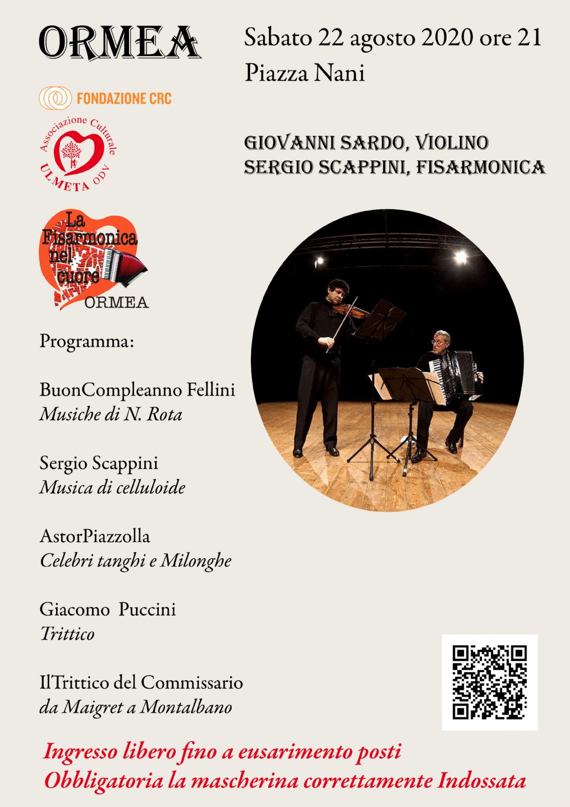 Il primo duo istituzionale italiano di Violino e Fisarmonica, che quest'anno celebra i 20 anni di attivitá ininterrotta, arriva a festeggiare nel Comune di Ormea anche perché li ha visti protagonisti di questo territorio nel corso di questi 20 anni.