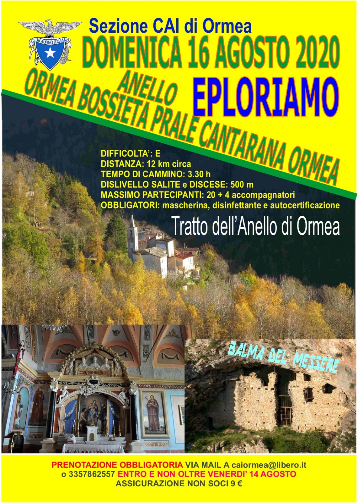 Prenotazione obbligatoria via mail: caiormea@libero.it