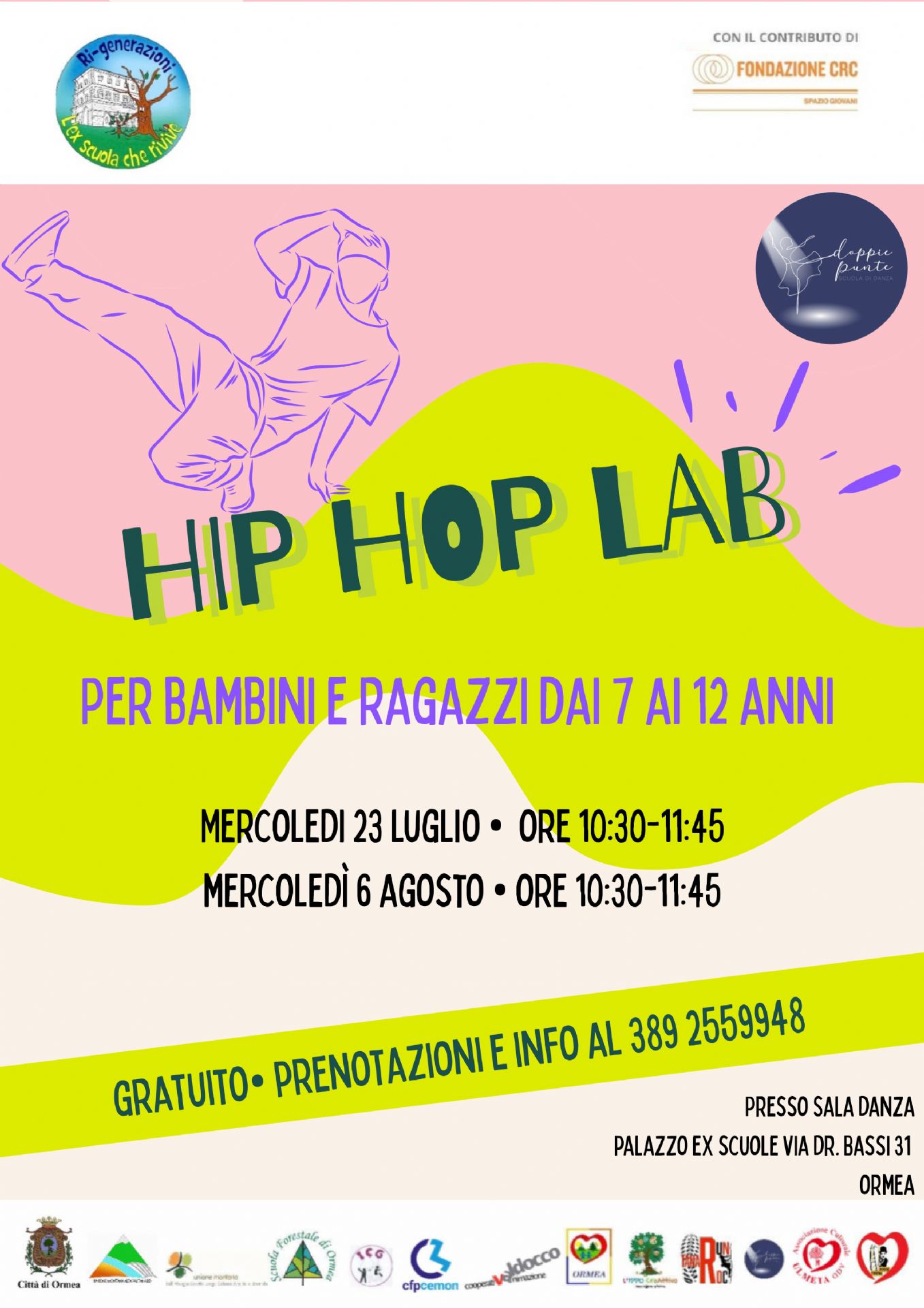 Se hai tra i 7 e i 12 anni, non perdere l’occasione di muoverti a ritmo con il nostro laboratorio gratuito di Hip Hop! Due mattinate piene di energia, musica e movimento per scatenare la creatività e divertirsi insieme! 💃🕺