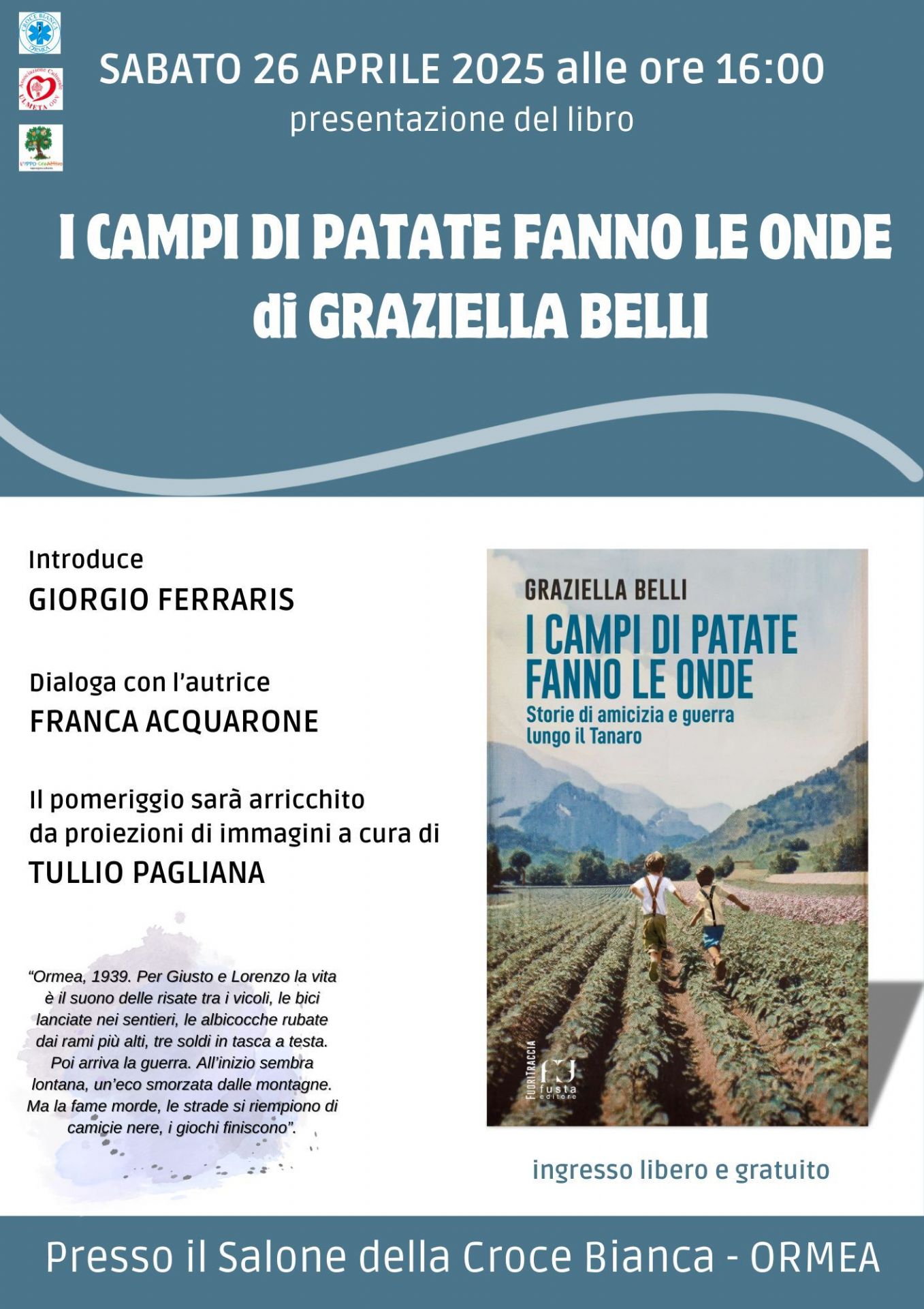 Sabato 26 aprile alle ore 16:00 nel Salone della Croce Bianca presentazione del libro di Graziella Belli dal titolo "I campi di patate fanno le onde"