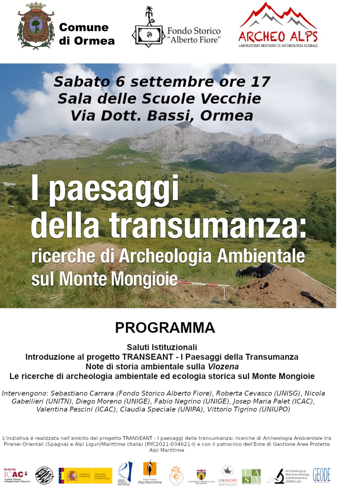 | Organizzazione | Comune di Ormea, Fondo Storico “Alberto Fiore”, Laboratorio ArcheoAlps |
