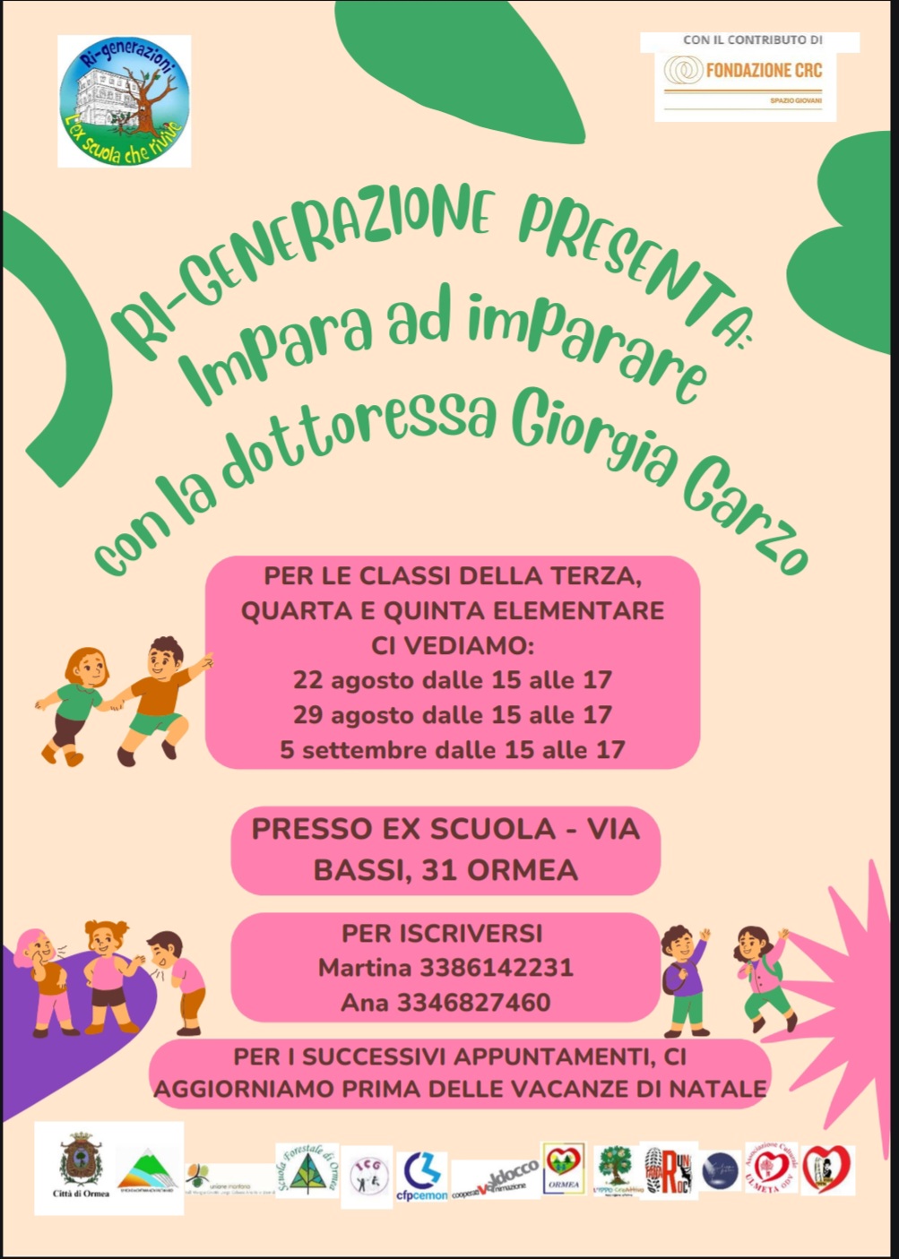 Nell’ambito del progetto RI-GENERAZIONE, con il contributo della Fondazione CRC, siamo felici di proporre un ciclo di incontri educativi rivolti agli alunni e alle alunne delle classi terza, quarta e quinta della scuola primaria.