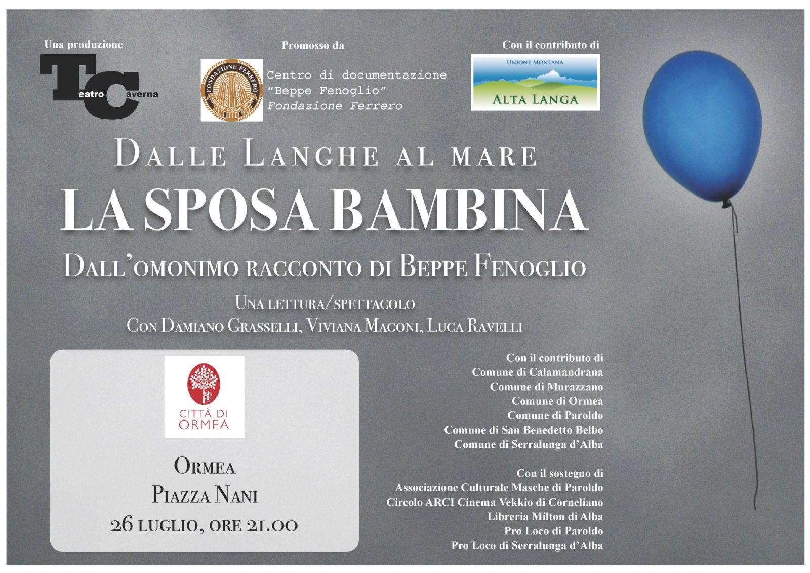 Con il contributo di Comune di Calamandrana, Comune di Murazzano, Comune di Ormea, Comune di Paroldo, Comune di San Benedetto Belbo, Comune di Serralunga d’Alba.