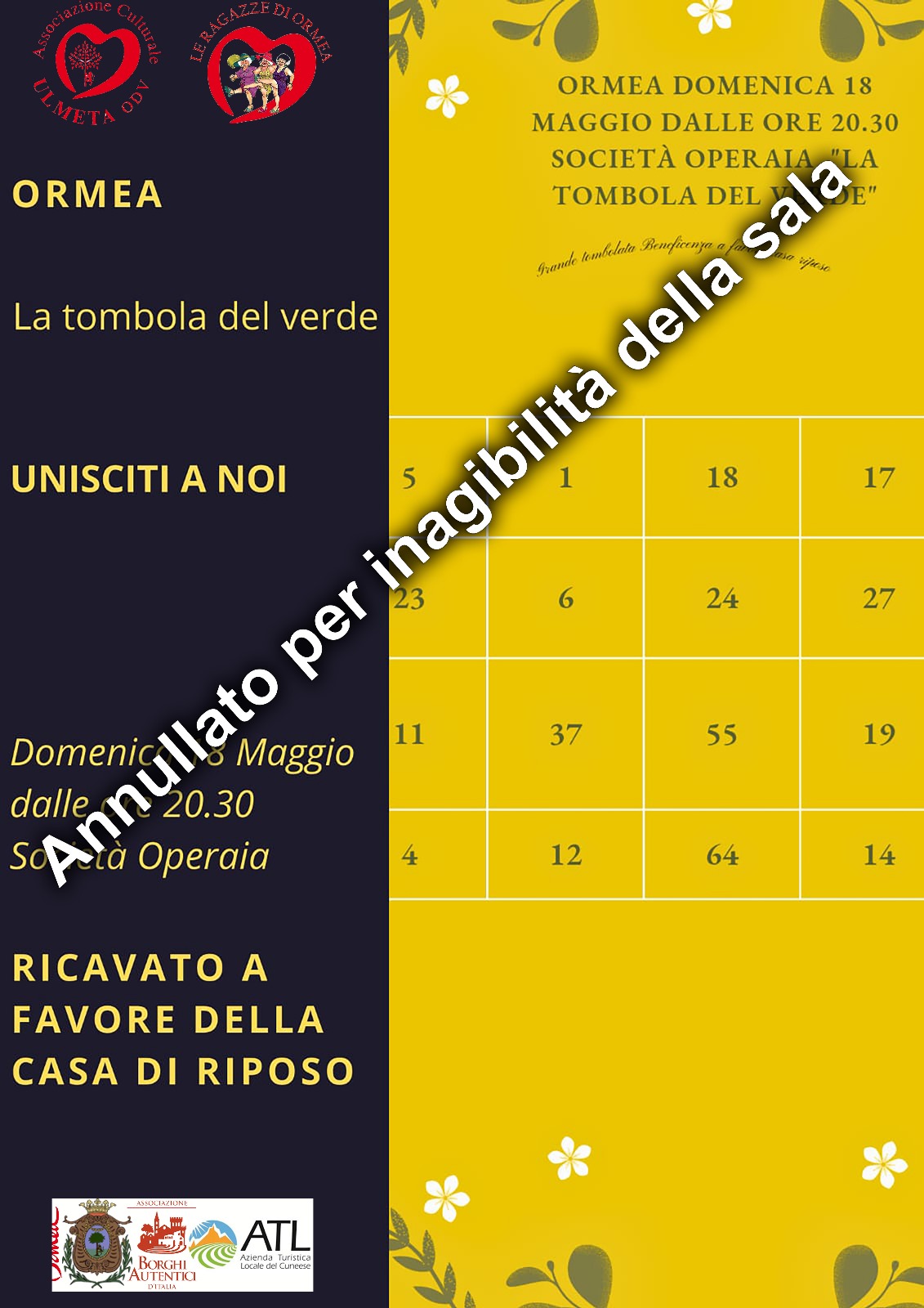 Domenica 18 Maggio, a partire dalle ore 20.30, presso la Società Operaia, si terrà l'evento benefico "La Tombola del Verde".