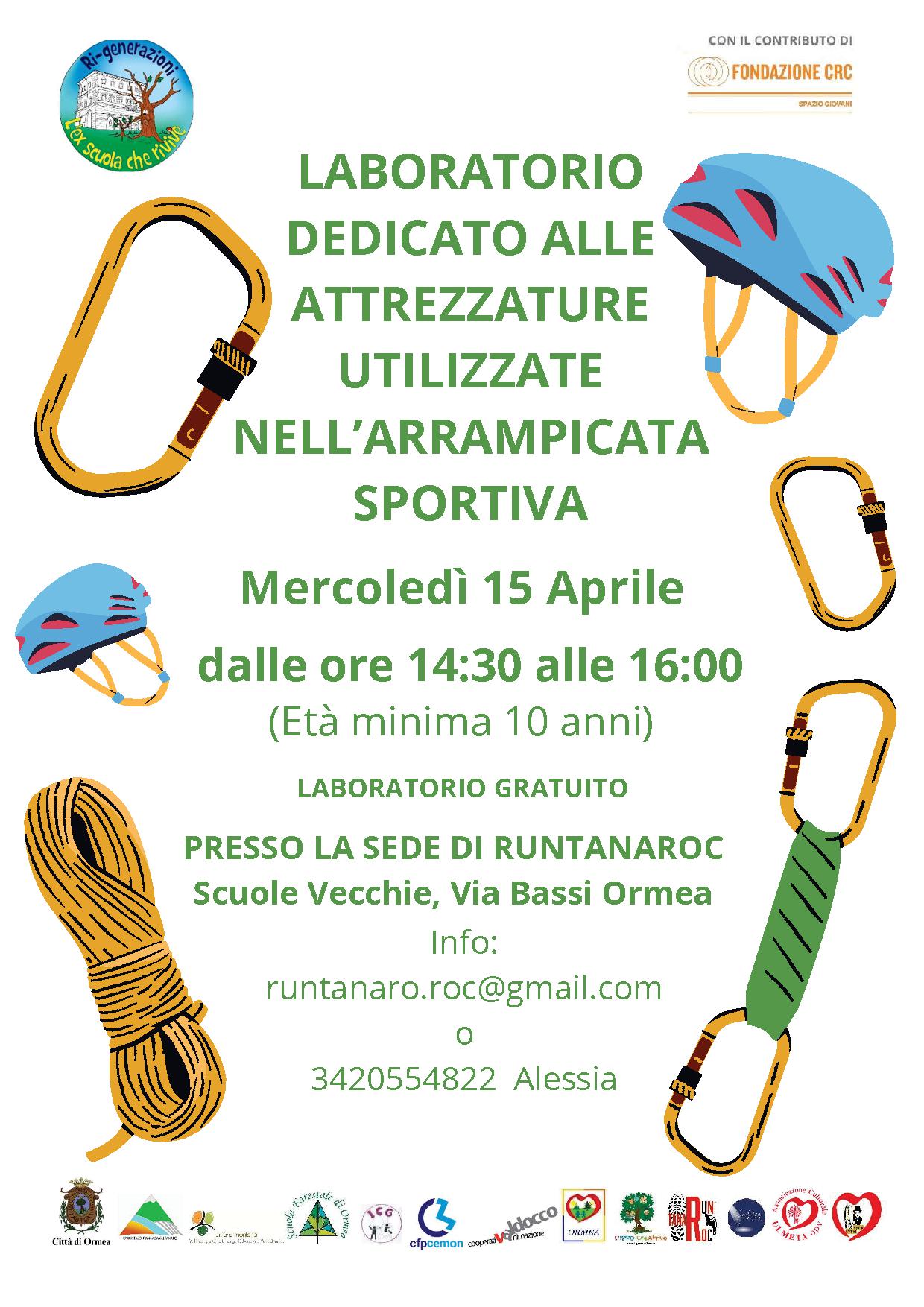 Mercoledì 15 aprile 2026 i ragazzi dell'Associazione RunTanaRoc vi aspettano per imparare a conoscere le attrezzature utilizzate nell'arrampicata sportiva presso Via Bassi, 31 - Ormea