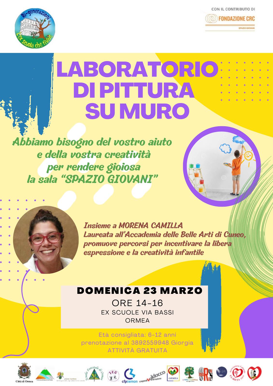 Domenica 23 marzo, ore 14:00 - 16:00 nelle Ex scuole Via Bassi - Ormea si terrà un Laboratorio di pittura su muro