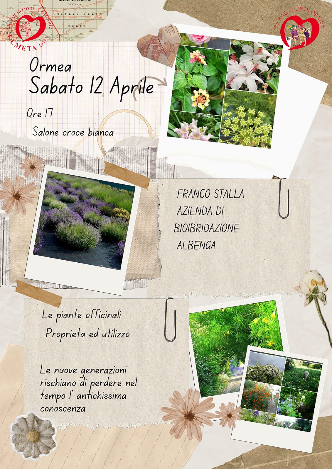 Sabato 12 aprile alle ore 17.00, nel Salone della Croce Bianca di Ormea, si terrà un incontro sulle piante officinali, le loro proprietà e il loro utilizzo.