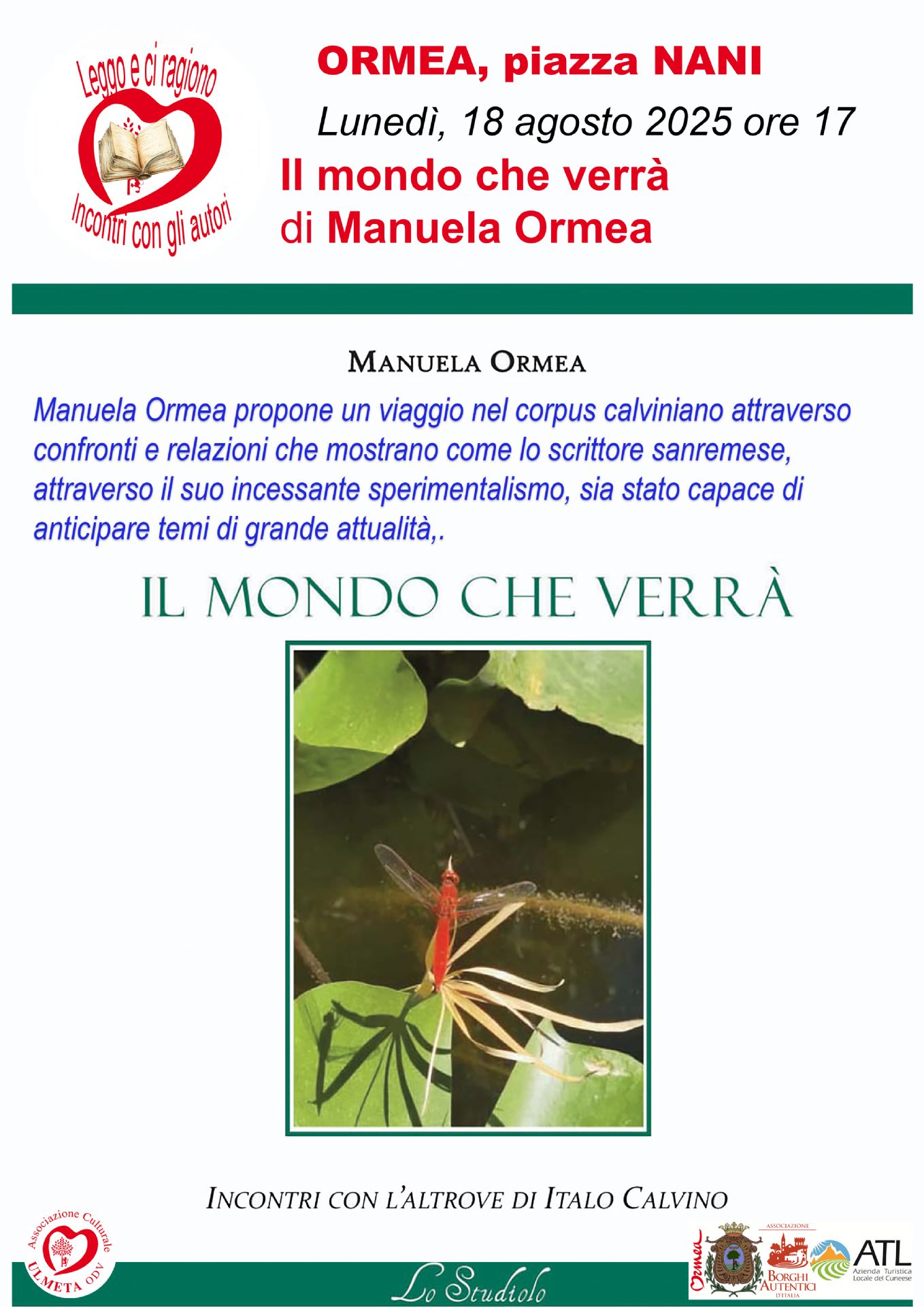 Lunedì 18 agosto alle ore 17.00 in piazza Nani, per la rassegna «Leggo e ci ragiono – Incontri con gli autori», Manuela Ormea presenta “Il mondo che verrà”