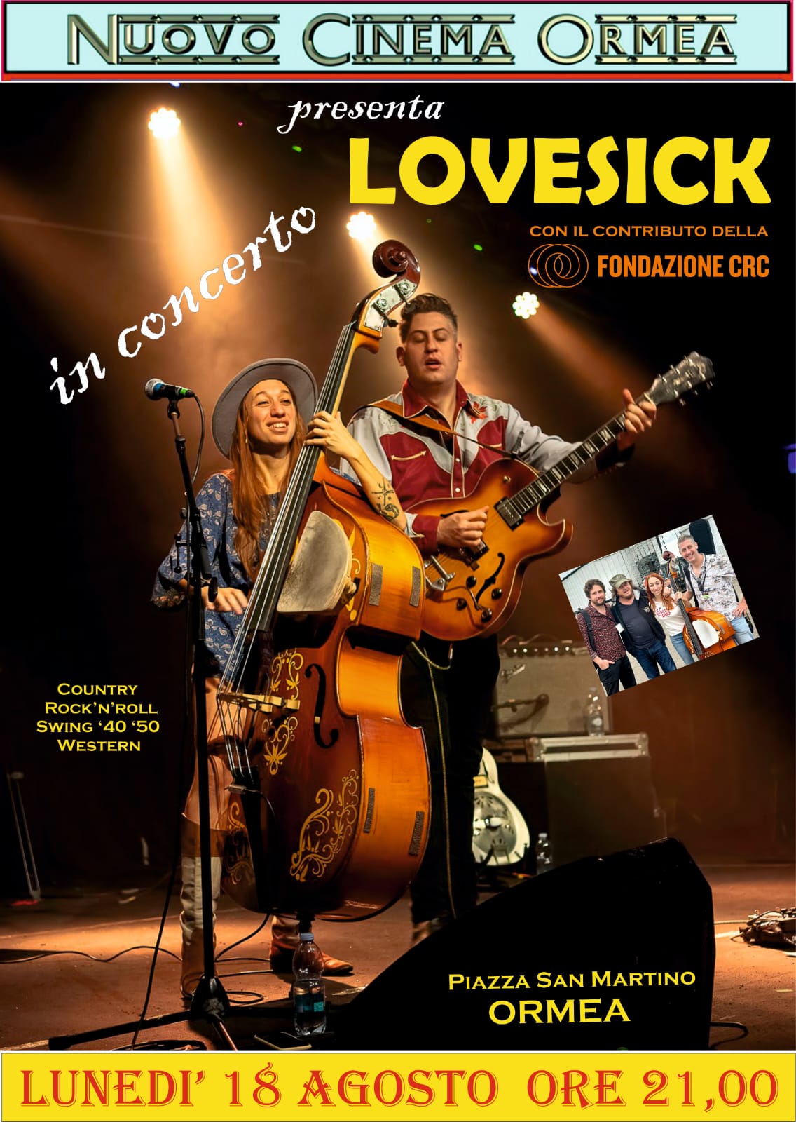 Lunedì 18 agosto, alle ore 21.00 in Piazza San Martino concerto dei Lovesick Duo, con un repertorio che spazia tra country, rock’n’roll, swing anni ’40 e ’50 e atmosfere western.