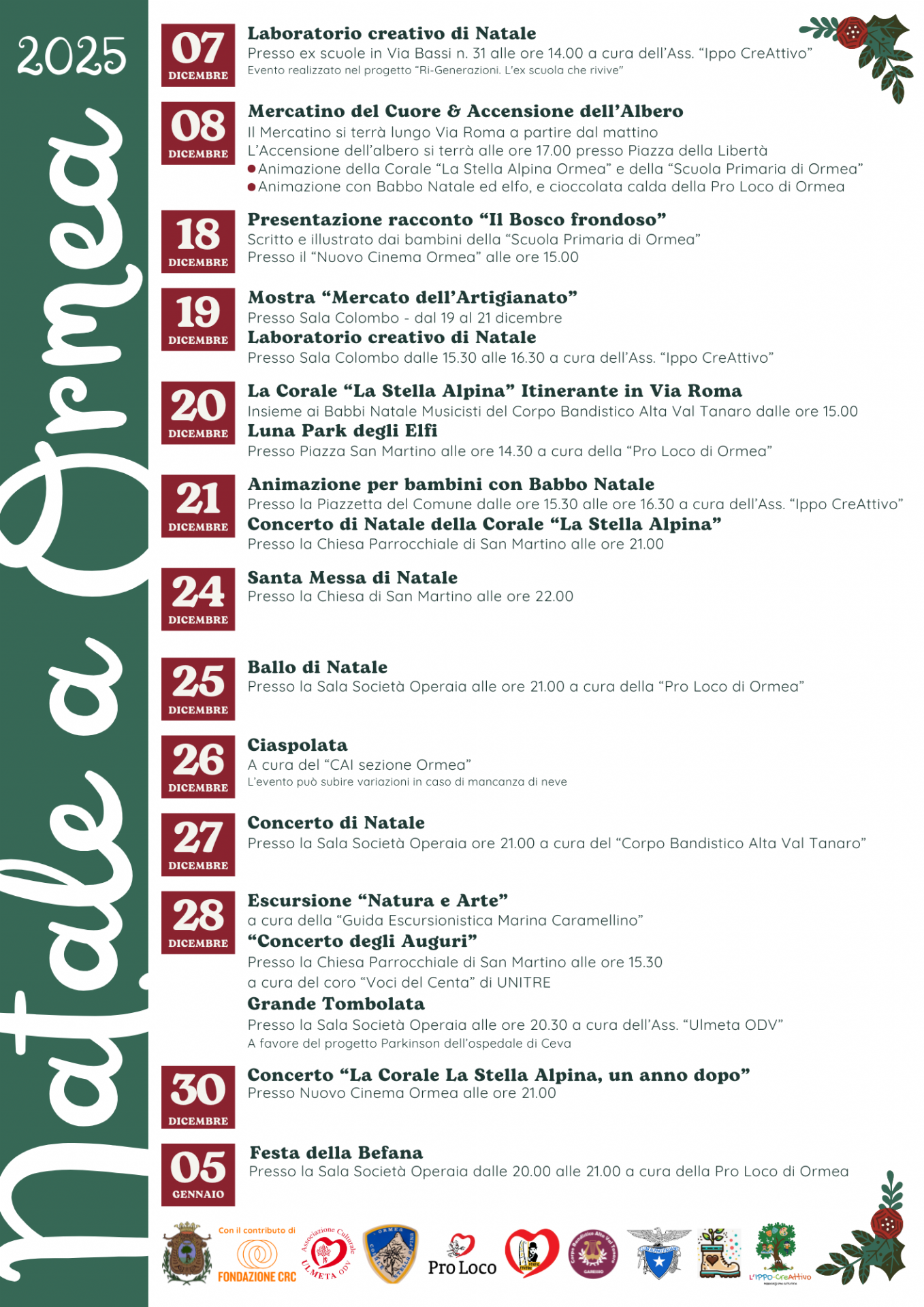 🎅✨ Ogni iniziativa avrà una locandina dedicata, che verrà pubblicata sul sito del Comune di Ormea, con tutti i dettagli su date, orari e attività.