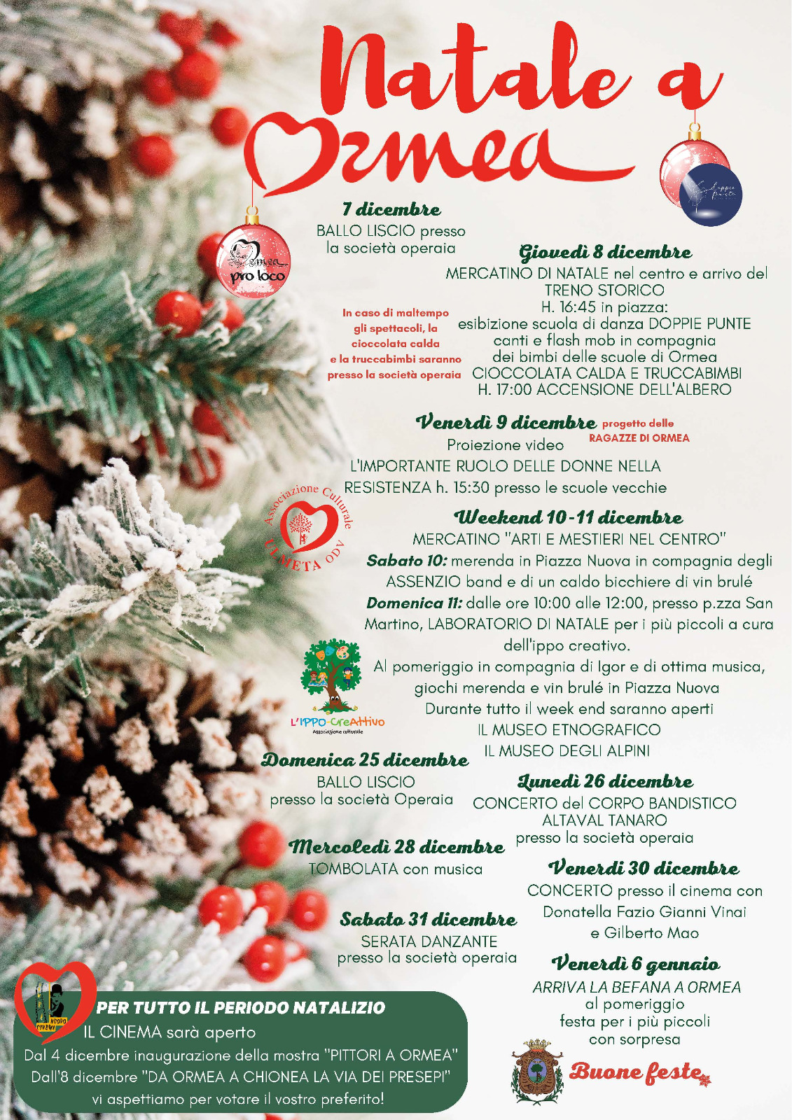 PER TUTTO IL PERIODO, IL CINEMA sarà APERTO, dal 4 DICEMBRE APERTURA DELLA MOSTRA "PITTORI A ORMEA", dall'8 dicembre "Da Ormea a Chionea la via dei Presepi" vi aspettiamo per votare il vostro preferito!