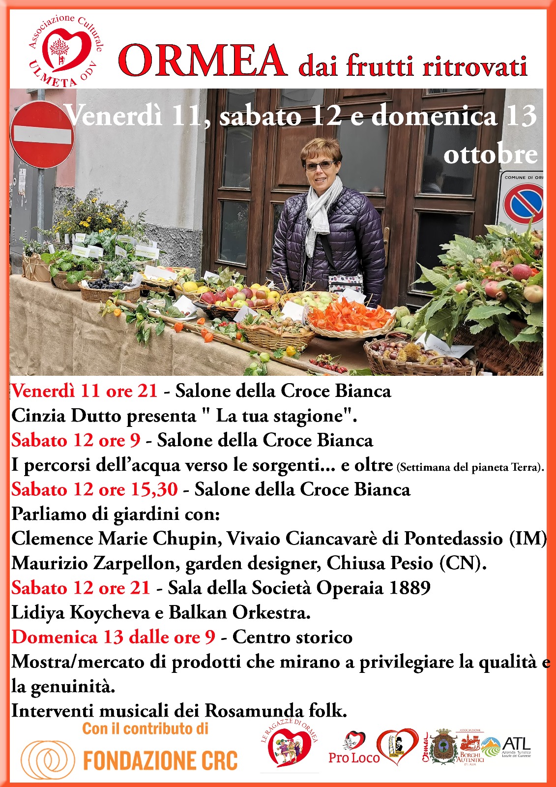 Domenica 13 ottobre, per tutto il giorno, nel centro storico di Ormea mostra mercato di prodotti della terra e loro derivati, coltivati e lavorati rispettando la salute e l'ambiente