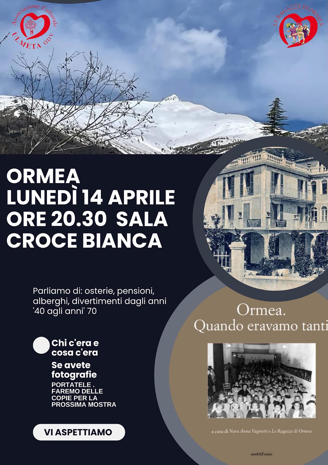 Chi ha fotografie dell’epoca può portarle: verranno fatte delle copie per la prossima mostra di "Ormea, quando eravamo tanti"