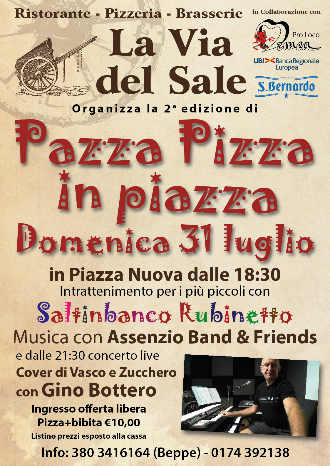 dalle 21.30 Musica dal vivo con Gino Bottero (cover di Vasco e Zucchero)