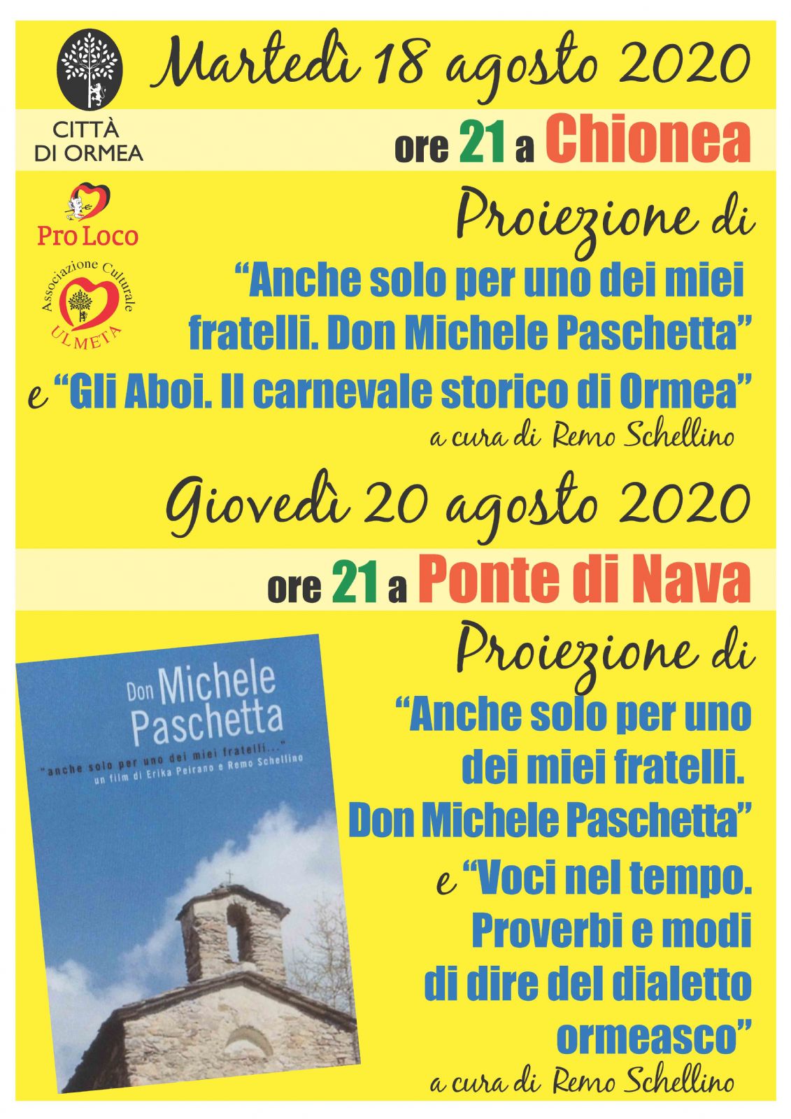 Proiezioni nelle frazioni di Chionea e di Ponte di Nava