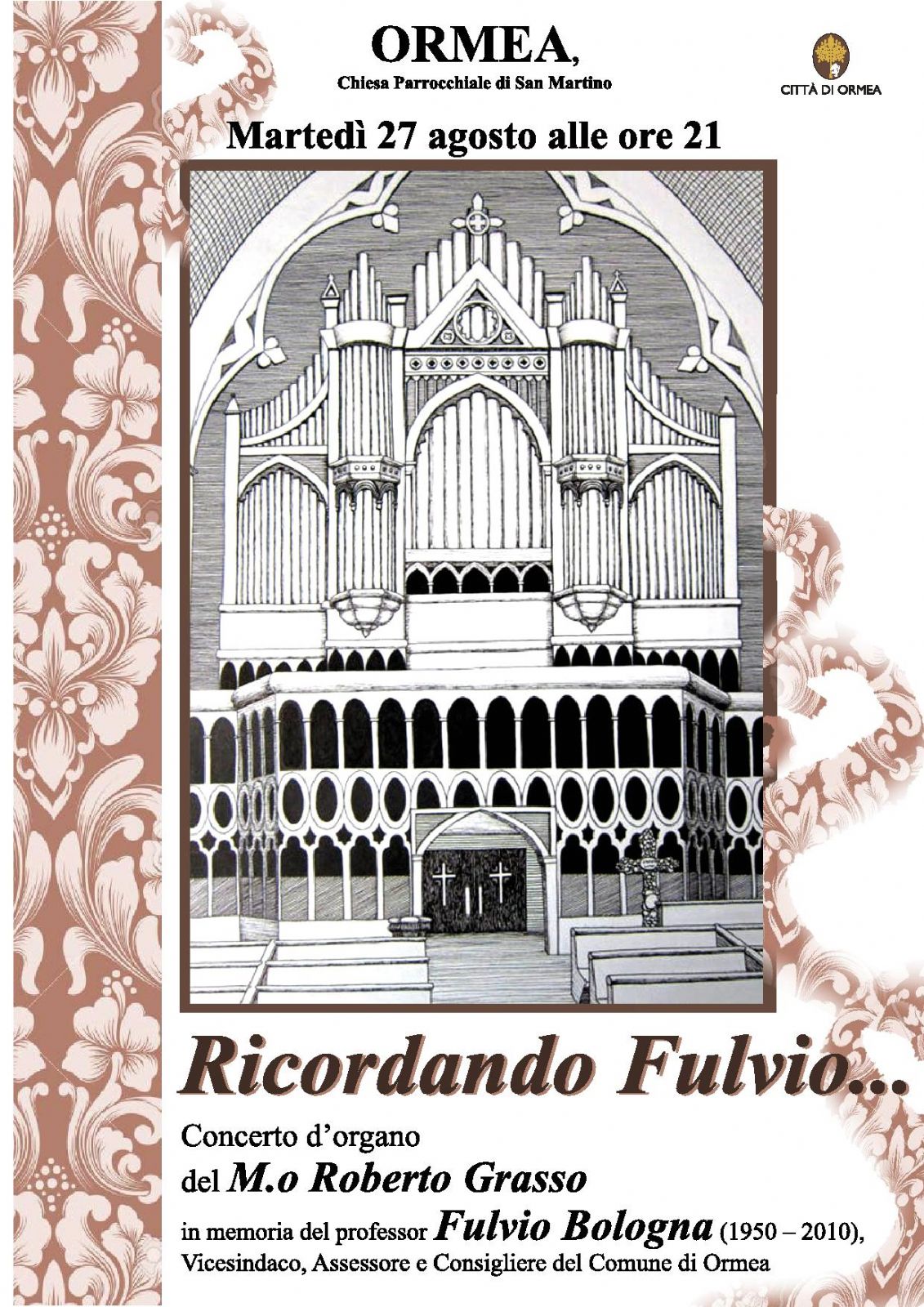 Concerto d'organo del Maestro Roberto Grasso, in memoria del professor Fulvio Bologna (1950-2010), Vicesindaco, Assessore e Consigliere del Comune di Ormea - nella Chiesa Parrocchiale di San Martino alle ore 21.00
