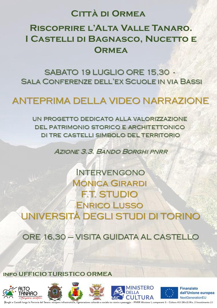 Presentazione della video-narrazione “Riscoprire l’Alta Valle Tanaro. I Castelli di Bagnasco, Nucetto e Ormea”, un progetto multimediale dedicato alla valorizzazione di tre castelli simbolo del territorio.