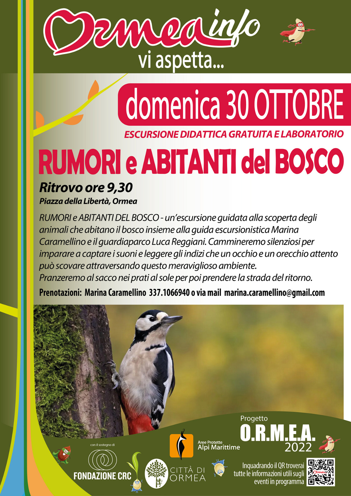 Un'escursione guidata alla scoperta degli animali che abitano il bosco insieme alla guida escursionistica Marina Caramellino e il guardiaparco Luca Reggiani. Cammineremo silenziosi per imparare a captare i suoni e leggere gli indizi che un occhio e un orecchio attento può scovare attraversando questo meraviglioso ambiente.