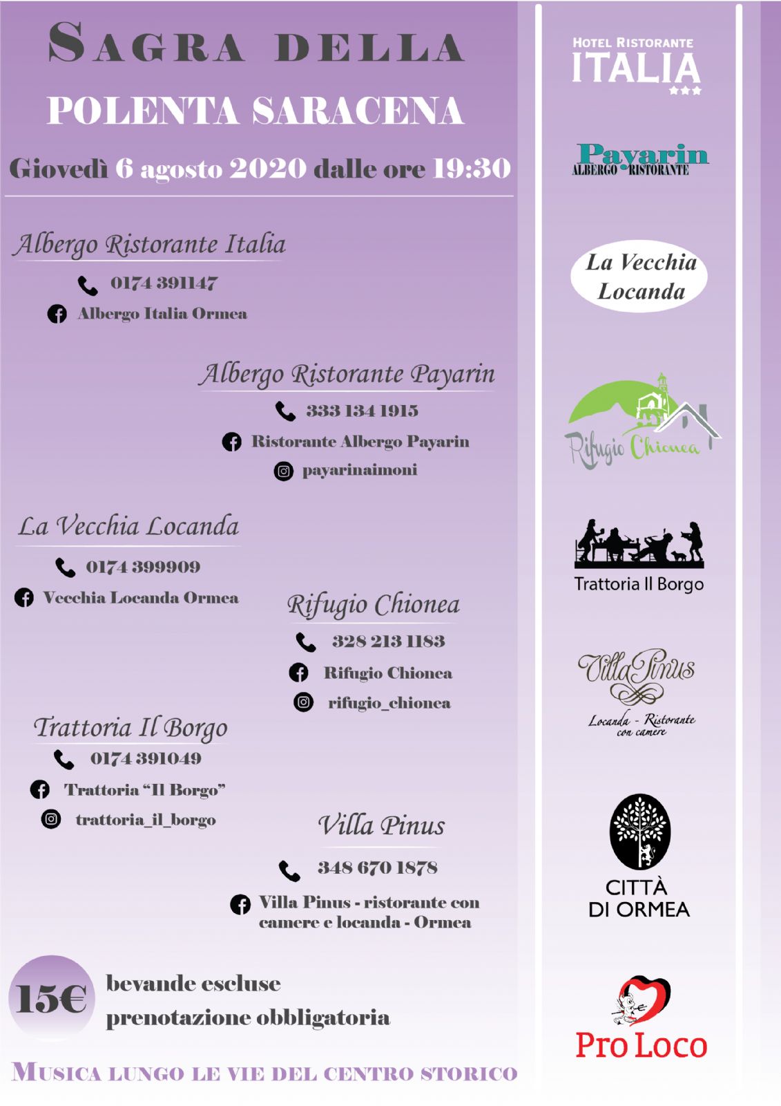 Un piatto tipico della tradizione enogastronomica Ormeasca verrà interpretato da 6 Ristoranti aderenti all'iniziativa.