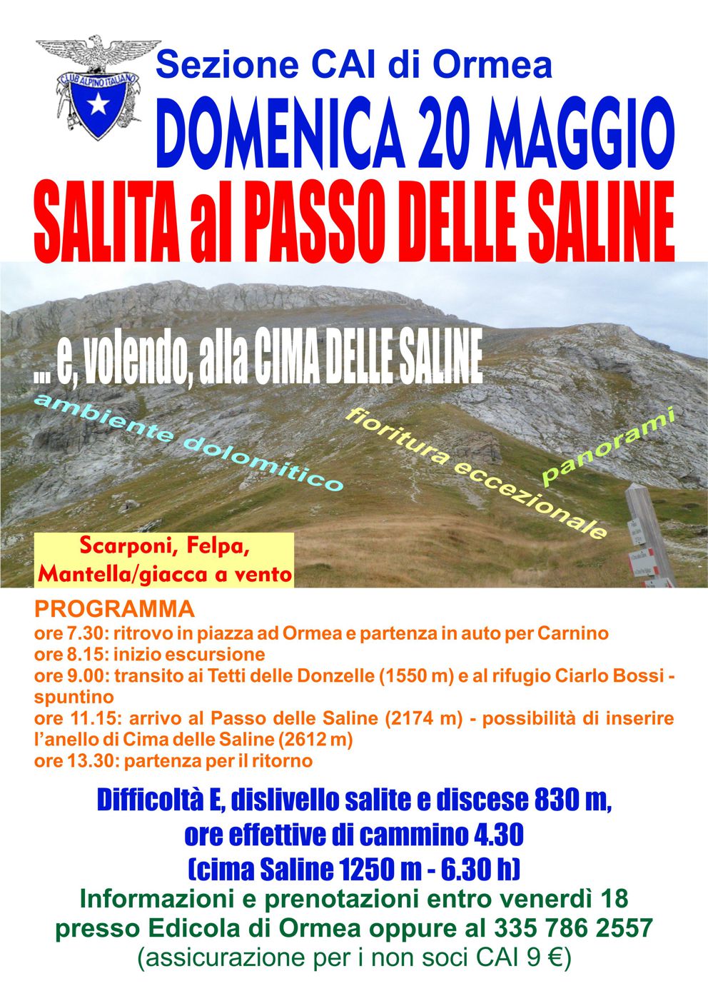 con la variante salendo sulla cima delle Saline a 1250 m - ore 6.30