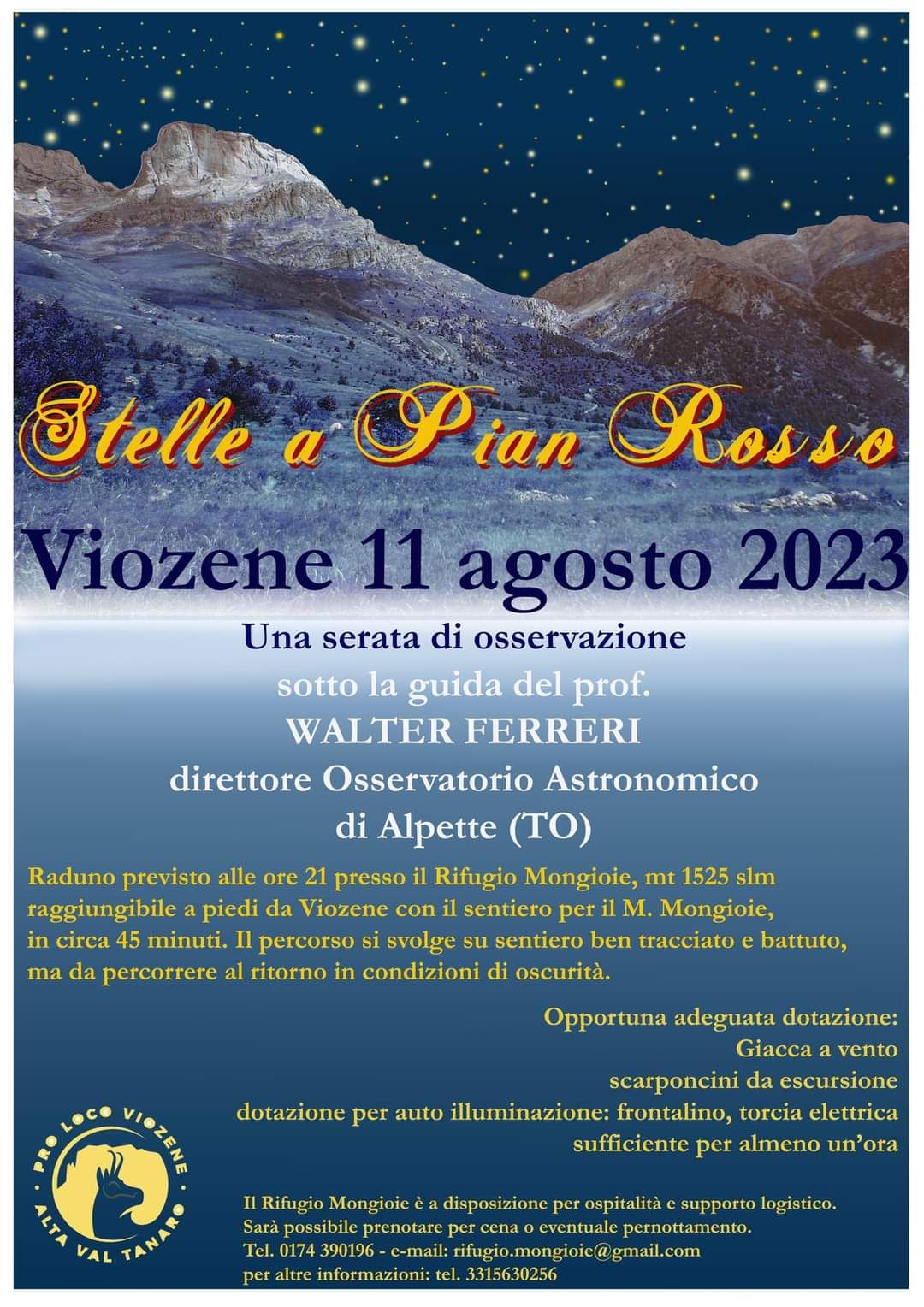 La Pro loco di Viozene organizza a Pian Rosso una serata sotto le Stelle a cura del dott. Walter Ferreri, responsabile R.P. Osservatorio Astronomico di Torino.