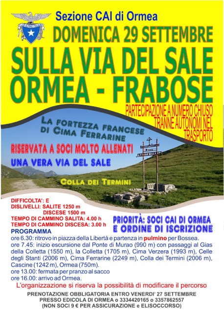 | Organizzazione | C.A.I. sez. Ormea |