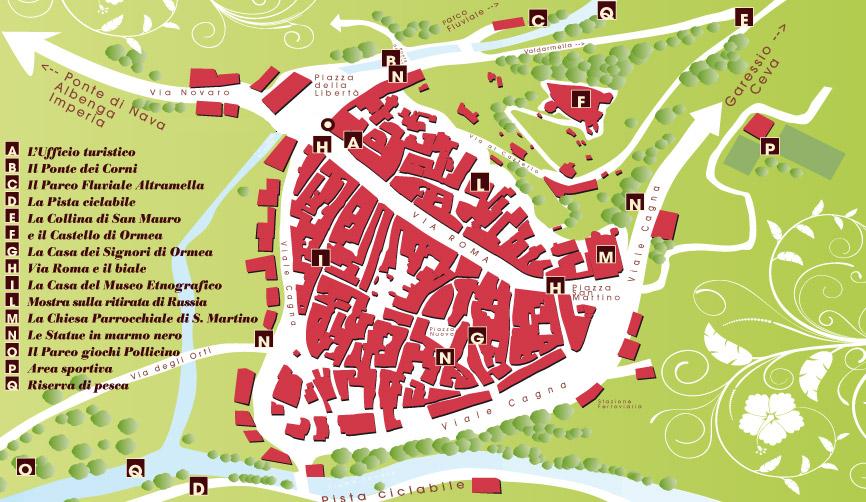 imboccando il portico che si trova in fondo e svoltando a sinistra ci si trova di fronte alla Casa dei Signori di Ormea. Si tratta di una casa signorile che risale al 1300, sulla cui facciata sono inserite antiche e pregevoli formelle scolpite in pietra nera. Risalendo Via Tanaro ci si trova ancora una volta in Via Roma. A questo punto la si può percorrere in discesa. La strada finisce sulla piazza della Chiesa Parrochiale di San Martino, protettore della città. La chiesa è sovrastata da un campanile romanico del X° secolo, al di sotto del quale è tuttora visibile l'antica porta di accesso alla città.