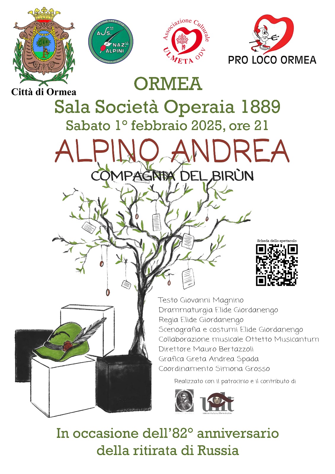 Sabato 1 febbraio nella Sala della Società Operaia - ore 21.00 in scena lo spettacolo Alpino Andrea