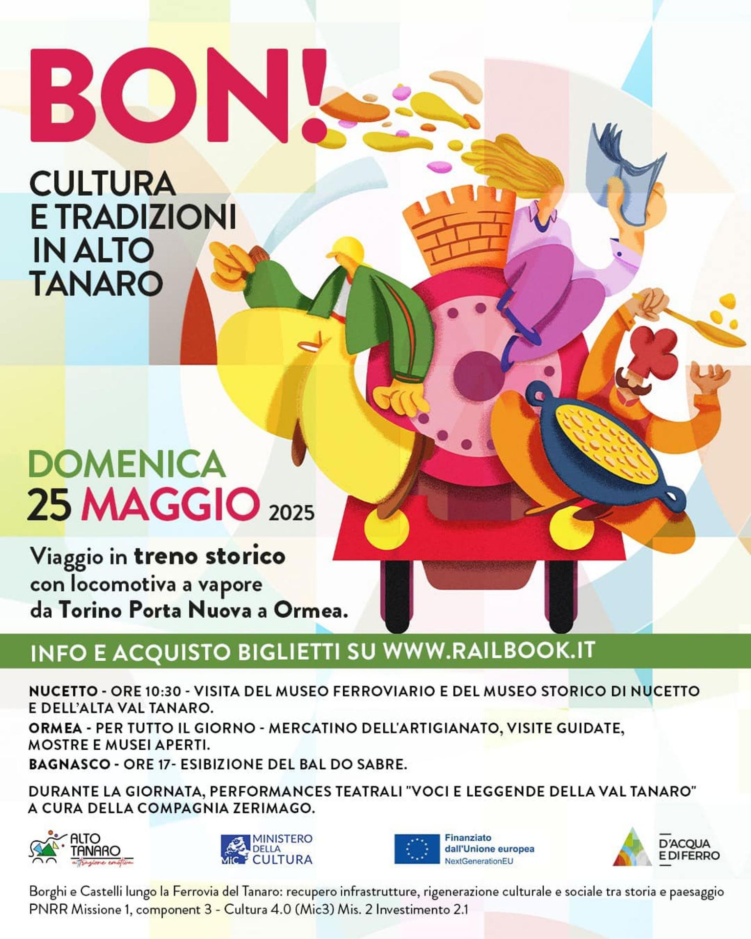 Inoltre, la Compagnia Teatrale ZERIMAGO di Torino presenterà a bordo la performance "Voci e leggende della Val Tanaro", rielaborazione teatrale di racconti e folklore del territorio.