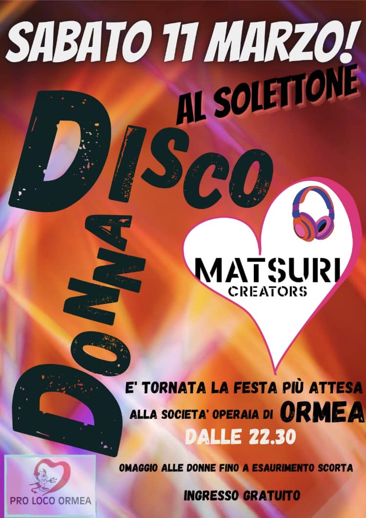 Dalle ore 22.30 festa della donna sotto al Solettone.