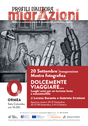 Nell'ambito della rassegna "Profili d'Autore - migrAzioni" , dal 20 settembre al 5 ottobre la Sala Colombo ospita la mostra fotografica "Dolcemente viaggiare...Luoghi per un turismo lento ed ecosostenibile", realizzata da Lorena Durante e Gabriele Cristiani.
