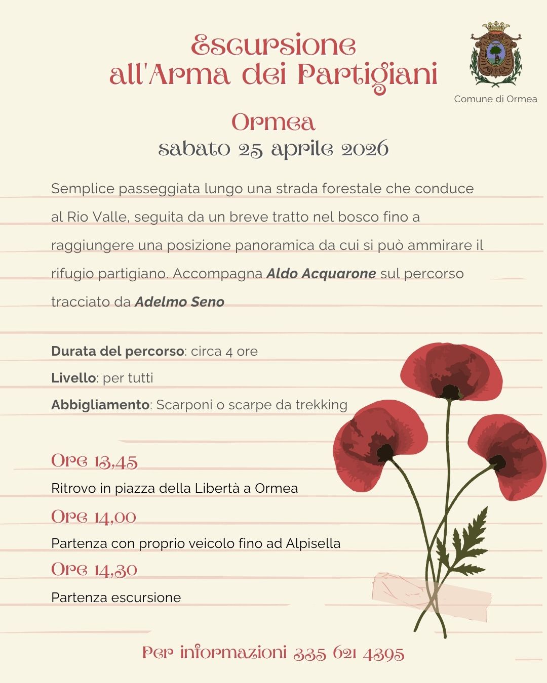 Ore 13,45 ritrovo in piazza della Libertà a Ormea Ore 14,00 partenza con proprio veicolo fino ad Alpisella