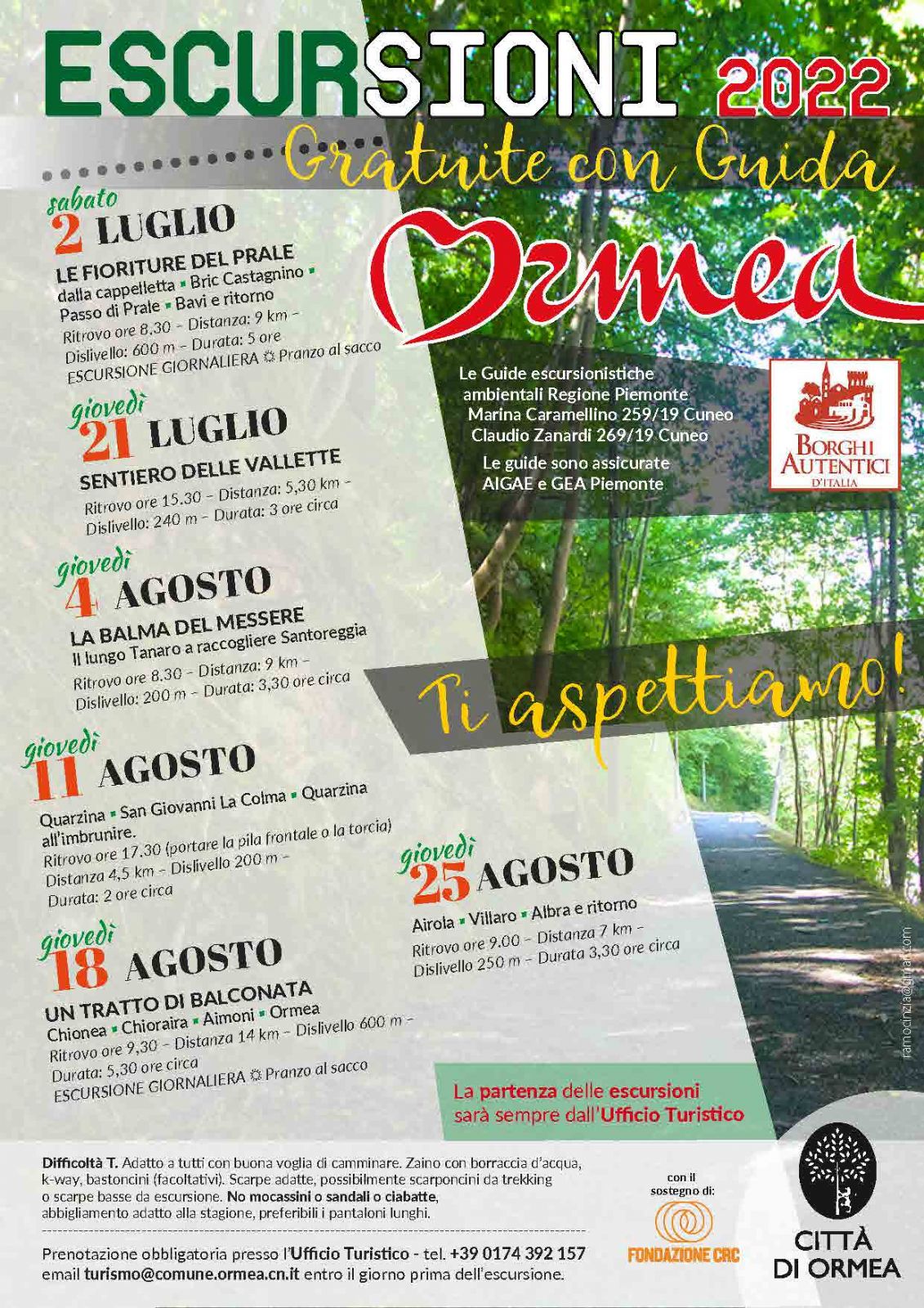 Prenotazione obbligatoria presso l’Ufficio Turistico +39 0174 392 157 - turismo@comune.ormea.cn.it