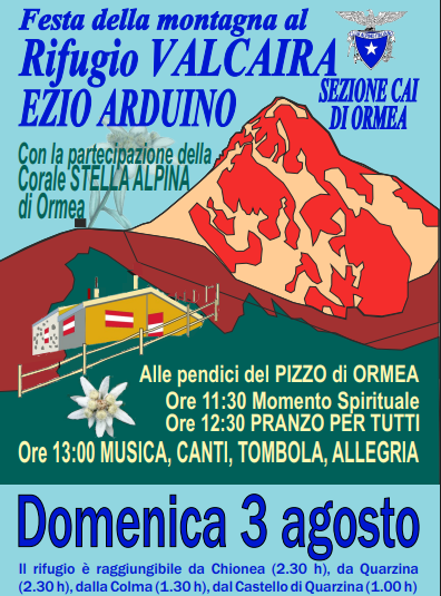 Domenica 3 agosto Festa della montagna al Rifugio Valcaira Ezio Arduino, organizzata dalla Sezione CAI di Ormea.