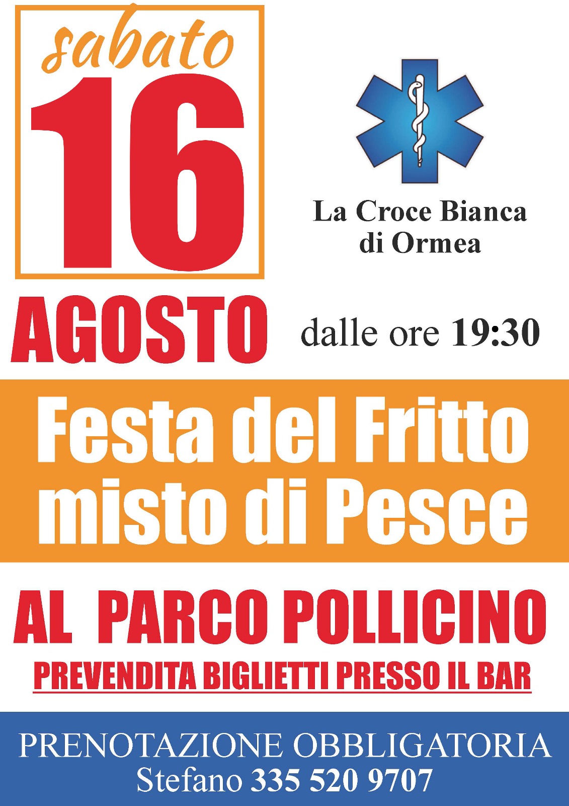 Sabato 16 agosto a partire dalle ore 19:30, la Croce Bianca di Ormea organizza al Parco Pollicino la Festa del Fritto Misto di Pesce.