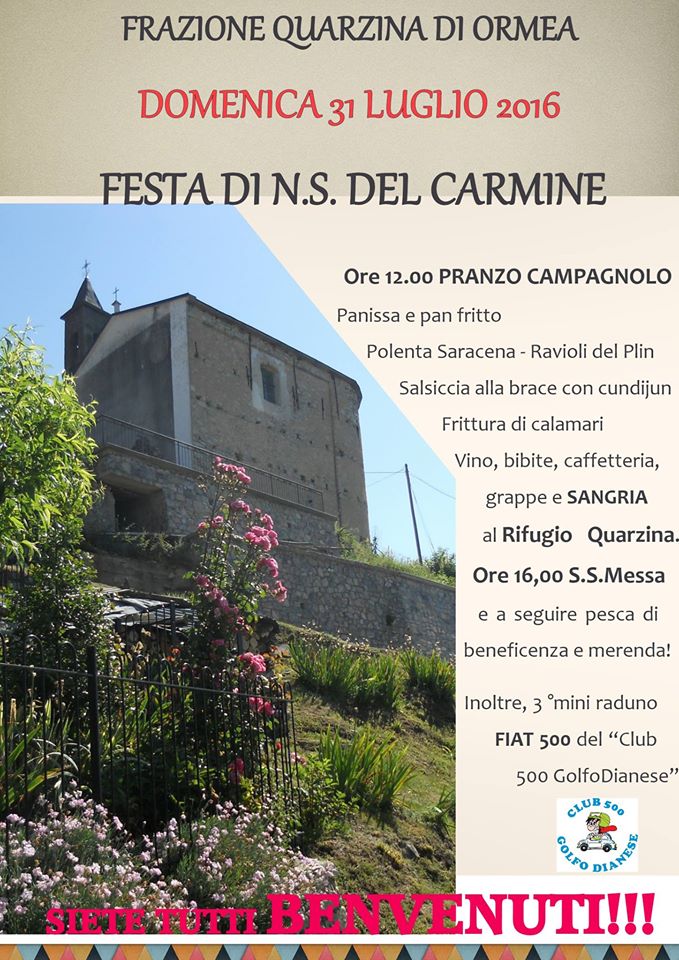Durante tutta la giornata potrete ammirare le bellissime e particolari FIAT 500 del “Club 500 GolfoDianese” impegnate nel loro 3° mini raduno Quarzinese!