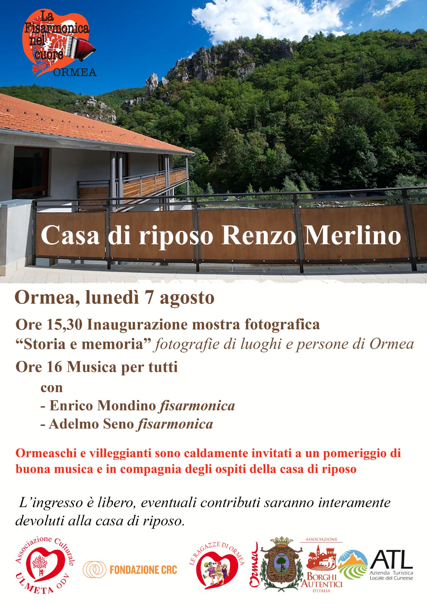 L'ingresso è libero, eventuali contributi saranno interamente devoluti alla casa di riposo.