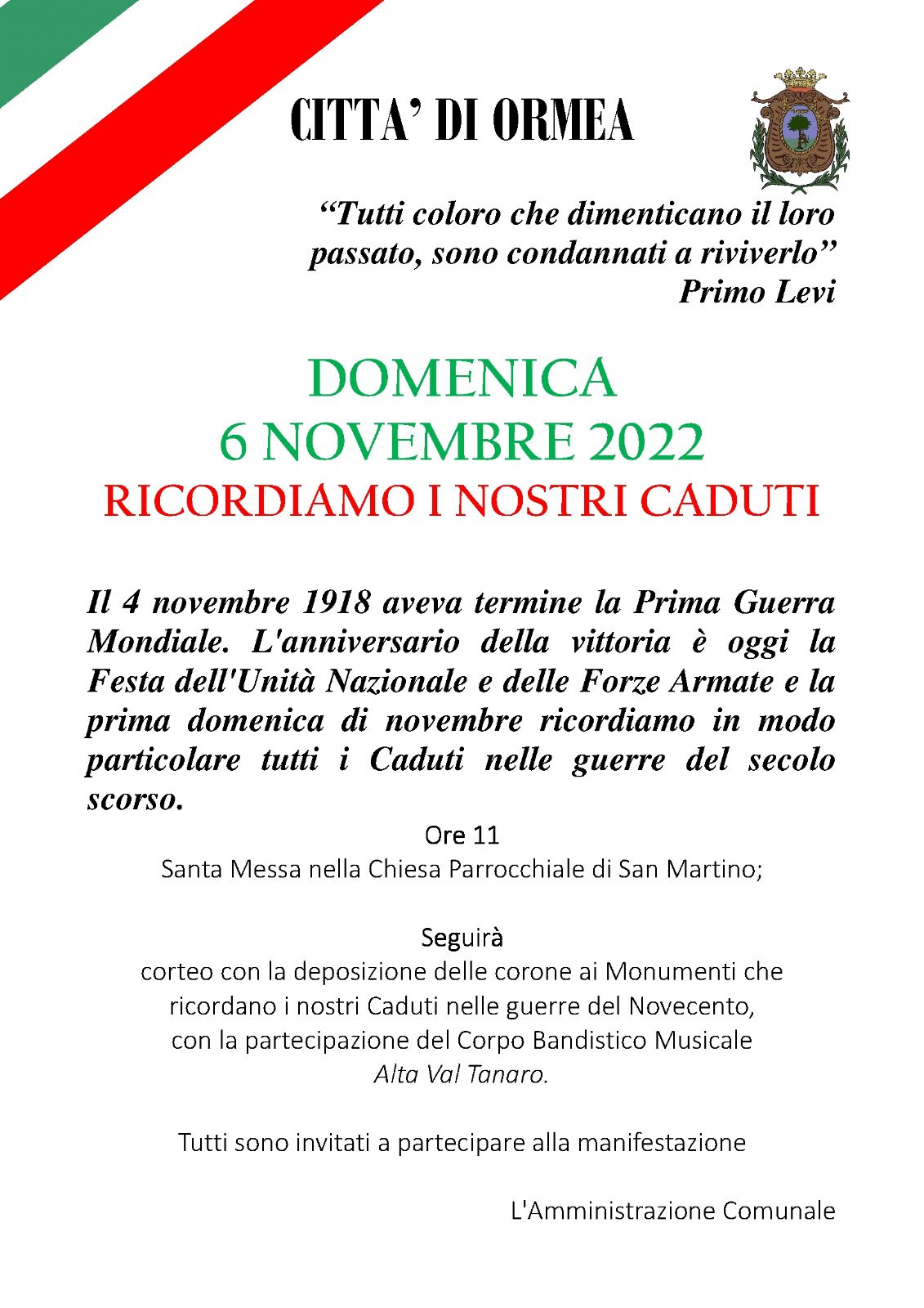 Il 4 novembre 1918 aveva termine la Prima Guerra Mondiale. L'anniversario della vittoria è oggi la Festa dell'Unità Nazionale e delle Forze Armate e la prima domenica di novembre ricordiamo in modo particolare tutti i Caduti nelle guerre del secolo scorso.