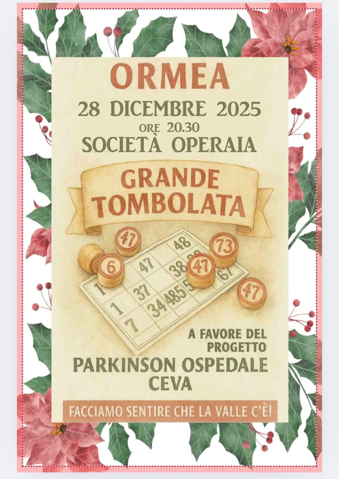 Domenica 28 dicembre, alle ore 20.30, grande tombolata della valle presso la Sala della Società Operaia.