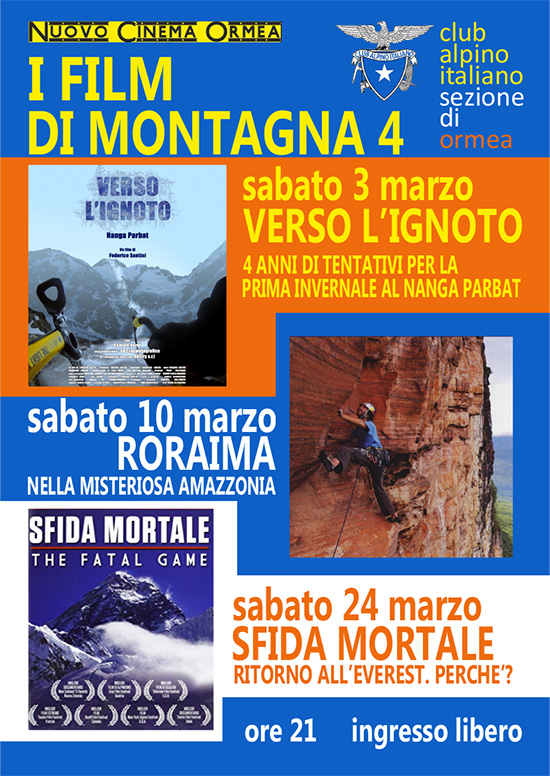 CAI di Ormea organizza presso il NUOVO CINEMA ORMEA la 4° edizione de "I Film di Montagna".