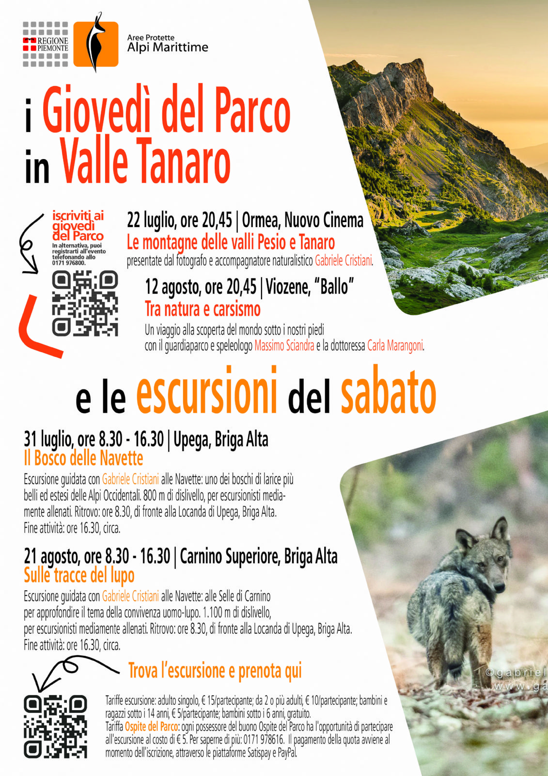 Tariffa Ospite del Parco: ogni possessore del buono Ospite del Parco ha l'opportunità di partecipare all'escursione al costo di 5 €. Per saperne di più: 0171 978 616. Il pagamento della quota avviene al momento dell'iscrizione, attraverso le piattaforme Satispay e PayPal.