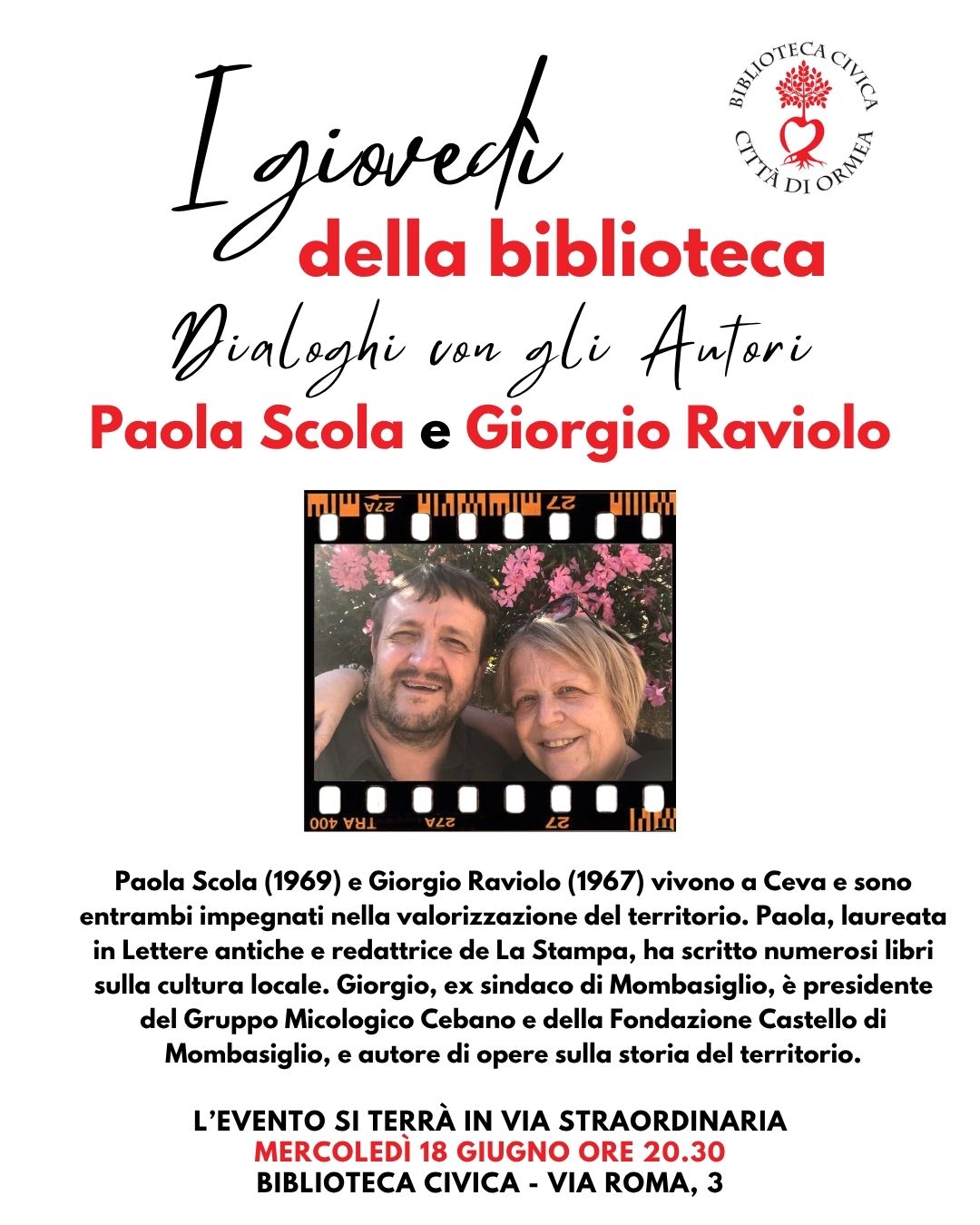 Ospiti della serata saranno Paola Scola (1969) e Giorgio Raviolo (1967), entrambi residenti a Ceva e da anni impegnati nella valorizzazione del territorio.